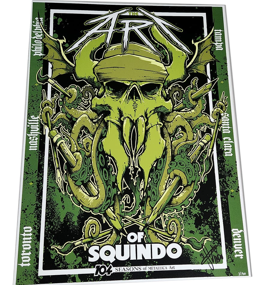 The official "Art of Squindo" 18x24, Screen Printed Poster celebrating 104 Seasons of my art with Metallica. Designed for the 2025 M72 US Tour Takeover Events!